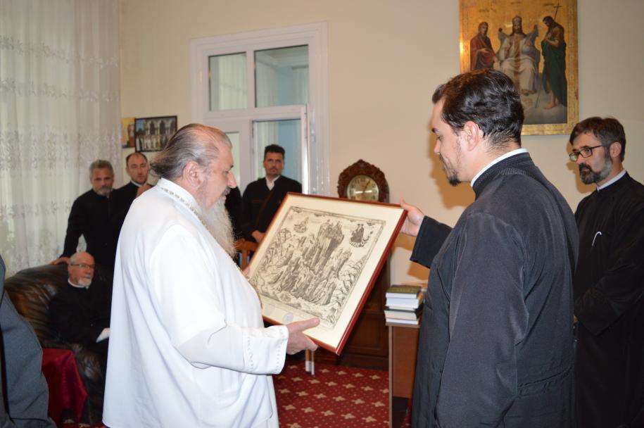 „Primul obiectiv vizat a fost chiar sediul Mitropoliei Basarabiei, unde am fost întâmpinați de IPS Părinte Petru, Arhiepiscopul Chișinăului, Mitropolitul Basarabiei și Exarhul Plaiurilor și de PS Părinte Antonie de Orhei, Episcop Vicar al Arhiepiscopiei Chișinăului, care ne-au primit cu mare bucurie și ne-au oferit un cuvânt de învățătura, în care s-au referit și la viața bisericească din cadrul Mitropoliei. După ce ne-am închinat în Paraclisul mitropolitan, IPS Părinte Petru ne-a dăruit fiecăruia câte o carte de predici, ca binecuvântare”, a precizat pr. Hrestic Nichifor.