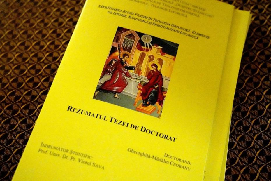 Întâlnirea a debutat cu susținerea tezei Sărbătoarea Bunei-Vestiri în Teologia Ortodoxă. Elemente de istorie, rânduială și spiritualitate liturgică, susținută de drd. Mădălin-Gheorghiță Ceobanu, redactor coordonator la Revista de gândire și spiritualitate creștină „Teologie și Viață”. Comisia științifică a fost formată din pr. prof. univ. dr. Alexăndrel Barnea de la Facultatea de Teologie Ortodoxă din Iași – președinte, pr. prof. univ. dr. Viorel Sava, directorul Școlii Doctorale – îndrumător, arhim. prof. univ. dr. Teofil Tia și pr. prof. univ. dr. Vasile Stanciu de la Universitatea „Babeş Bolyai” Cluj-Napoca, dar și conf. univ. dr. Cristian Cezar Login de la Universitatea de Medicină şi Farmacie „Iuliu Haţieganu” din Cluj-Napoca. După citirea referatelor, comisia și-a exprimat recunoștința față de doctorand, afirmând totodată nerăbdarea ca lucrarea să vadă lumina tiparului cât mai repede.