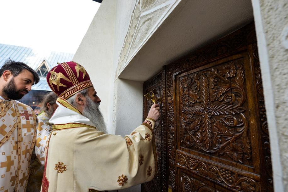 Înaltpreasfințitul Părinte Mitropolit Teofan a fost prezent sâmbăta trecută la sărbătoarea comunităţii din Drăgușeni, prilejuită de resfințirea bisericii parohiale, în urma unor ample lucrări de consolidare, reconstrucție și conservare. După primirea tradiţională a ierarhului cu pâine şi cu sare, a urmat slujba de târnosire. După slujba de sfinţire prin ungere cu Sfântul şi Marele Mir şi prin stropire cu apă sfinţită, atât la exteriorul, cât şi la interiorul bisericii, soborul slujitor, condus de IPS Părinte Teofan, Mitropolitul Moldovei şi Bucovinei, a oficiat Sfânta Liturghie pe un podium special amenajat în curtea locaşului de închinăciune.