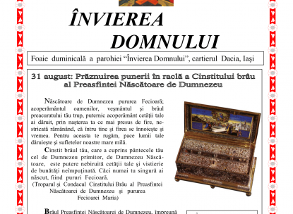 Foaie duminicală a Parohiei „Învierea Domnului” Iași Nr. 1119/31.08.2025