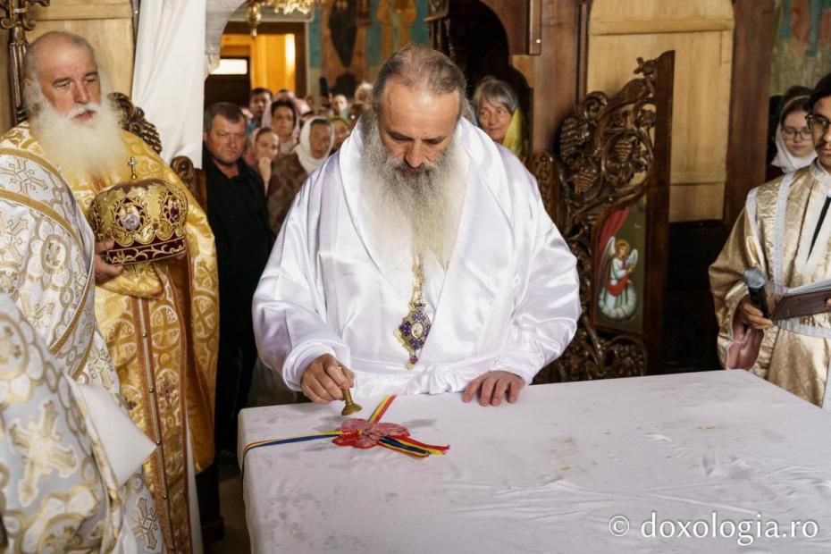 Slujba de binecuvântare a noului locaș a fost săvârșită de Înaltpreasfințitul Părinte Teofan, împreună cu un sobor de preoți și diaconi. Ierarhul a sfințit zidurile exterioare cu Sfântul și Marele Mir și cu apă sfințită, iar mai apoi a pecetluit Sfânta Masă.