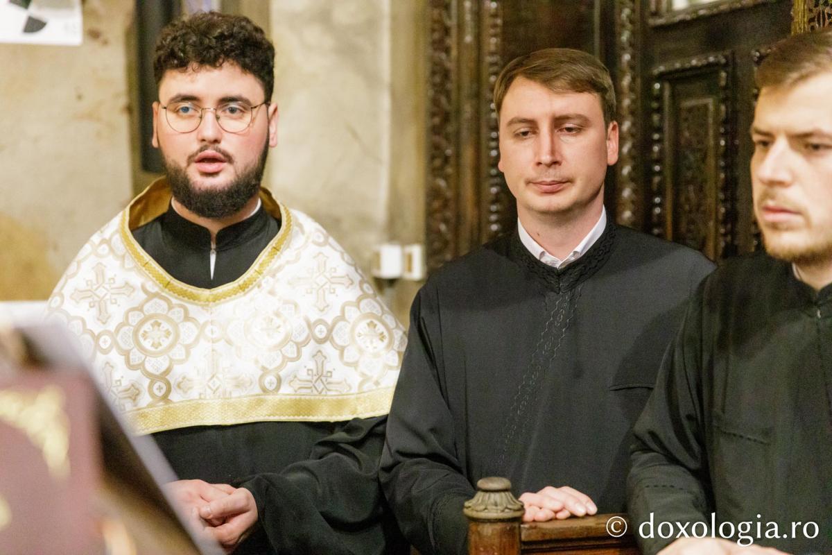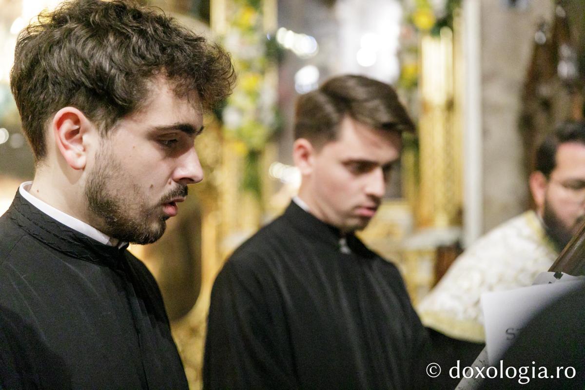 Răspunsurile la strana dreapta au fost date de Corul Chivotul „Chivotul” al Catedralei Mitropolitane, iar la strana stângă Corul „Basileus” al Seminarului Teologic Ortodox „Sfântul Vasile Cel Mare” din Iași.