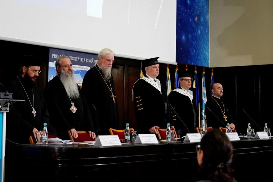 Ceremonia de acordare a titlului onorific a avut loc în această dimineață, în Aula Magna „Mihai Eminescu” din cadrul UAIC. Alături de conducerea universității a participat și Înaltpreasfințitul Părinte Teofan, Mitropolitul Moldovei și Bucovinei, care a transmis un cuvânt de felicitare și binecuvântare: