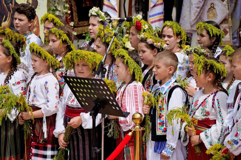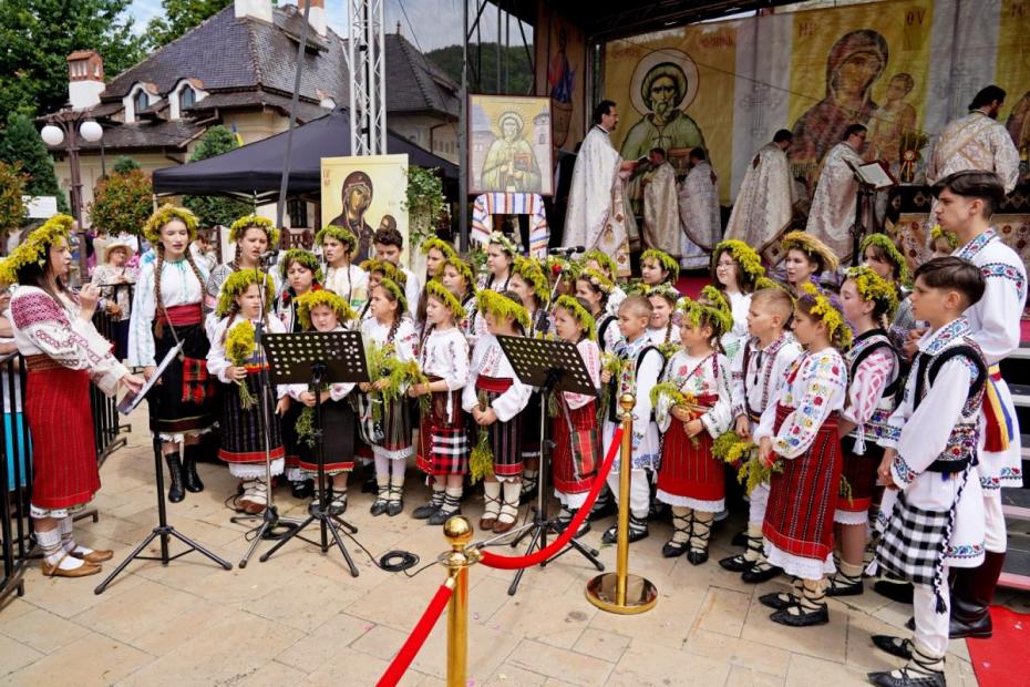 „A devenit o tradiție ca, în fiecare an, atunci când credincioșii primesc Sfintele Taine, Grupul „Floare de Colț” al Centrului pentru Cultură și Arte „Carmen Saeculare”, coordonat de prof. Georgiana Carmina Șerban Axinte, să interpreteze o serie de pricesne închinate Sfântului Ioan Botezătorul și Sfântului Gheorghe Pelerinul, patronii spirituali ai orașului, oferindu-le pietrenilor, la final, flori de sânziene.