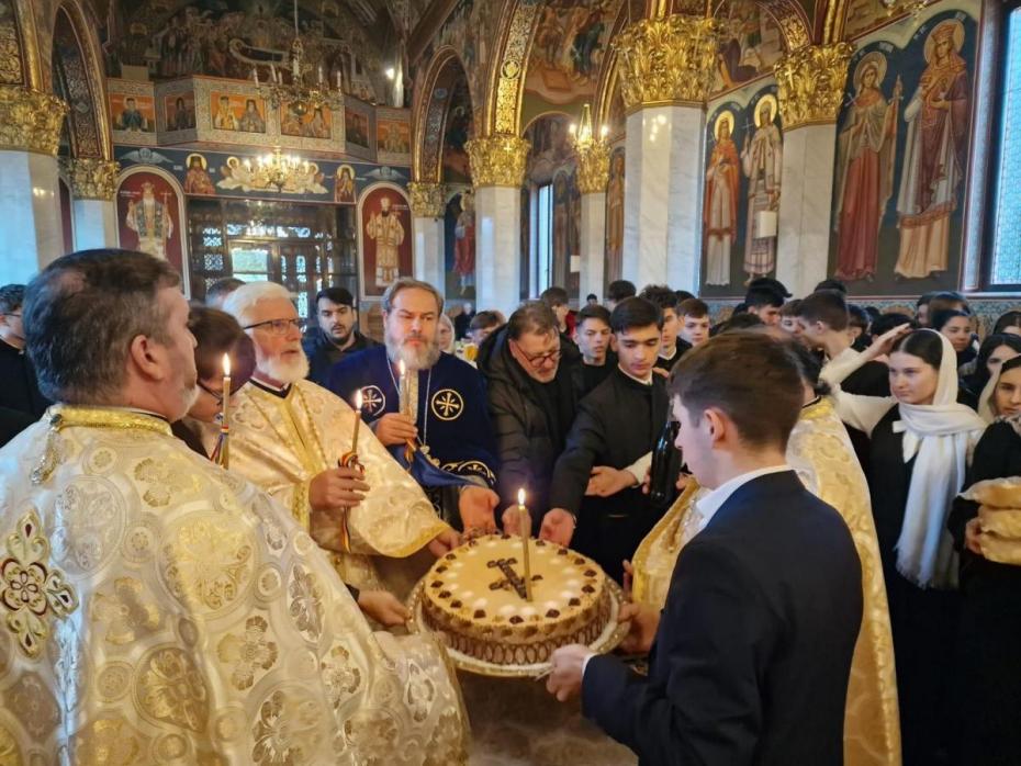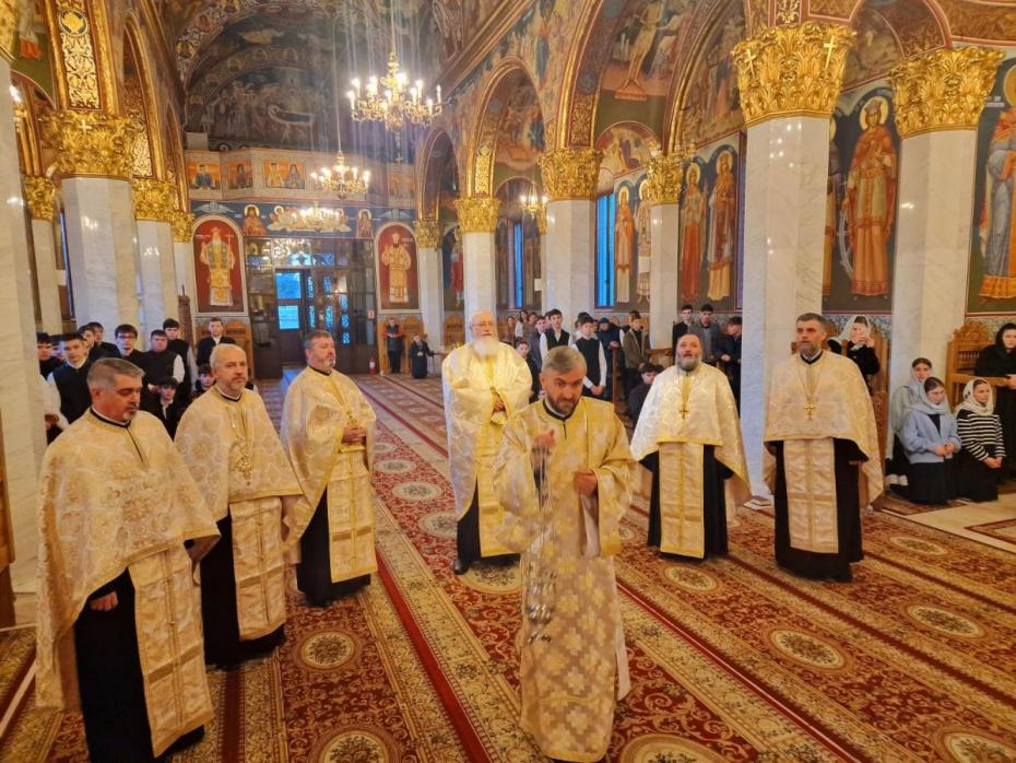 Adresându-se elevilor seminariști, oaspetele le-a reamintit de ce îi numim pe Sfinții Trei Ierarhi patronii școlilor teologice din țară și din toată lumea ortodoxă: „pentru cei ce se pregătesc spre a deveni slujitori ai Sfintelor Altare, Sfinții Trei Ierarhi sunt ca niște icoane de lumină călăuzitoare spre calea plăcută Domnului. Ei îi învață pe preoți cum să-și manifeste credința, iubindu-L pe Hristos și Biserica Sa mai presus de orice demnități ori interese lumești. Nevoințele și râvna lor să ne reamintească mereu că trebuie să avem conștiința chemării sfinte, o legătură unică dintre Hristos și fiecare preot în parte. Urmându-le pilda, să devenim icoana nemijlocită a lucrării și prezenței Domnului în Biserica Sa”. La momentul potrivit al Sfintei Liturghii mulți tineri s-au împărtășit, întregind astfel bucuria sărbătorii.