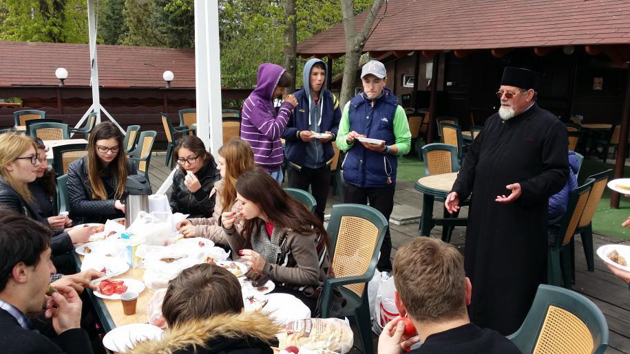 Vecernia de la Cărbuna şi apoi cina la care am fost invitaţi cu drag de către părintele Elefterie au fost o nouă experienţă. Dar ziua nu s-a încheiat. Înainte de odihnă tinerii l-au invitat pe părinte pentru a se bucura împreună de jocurile copilăriei.